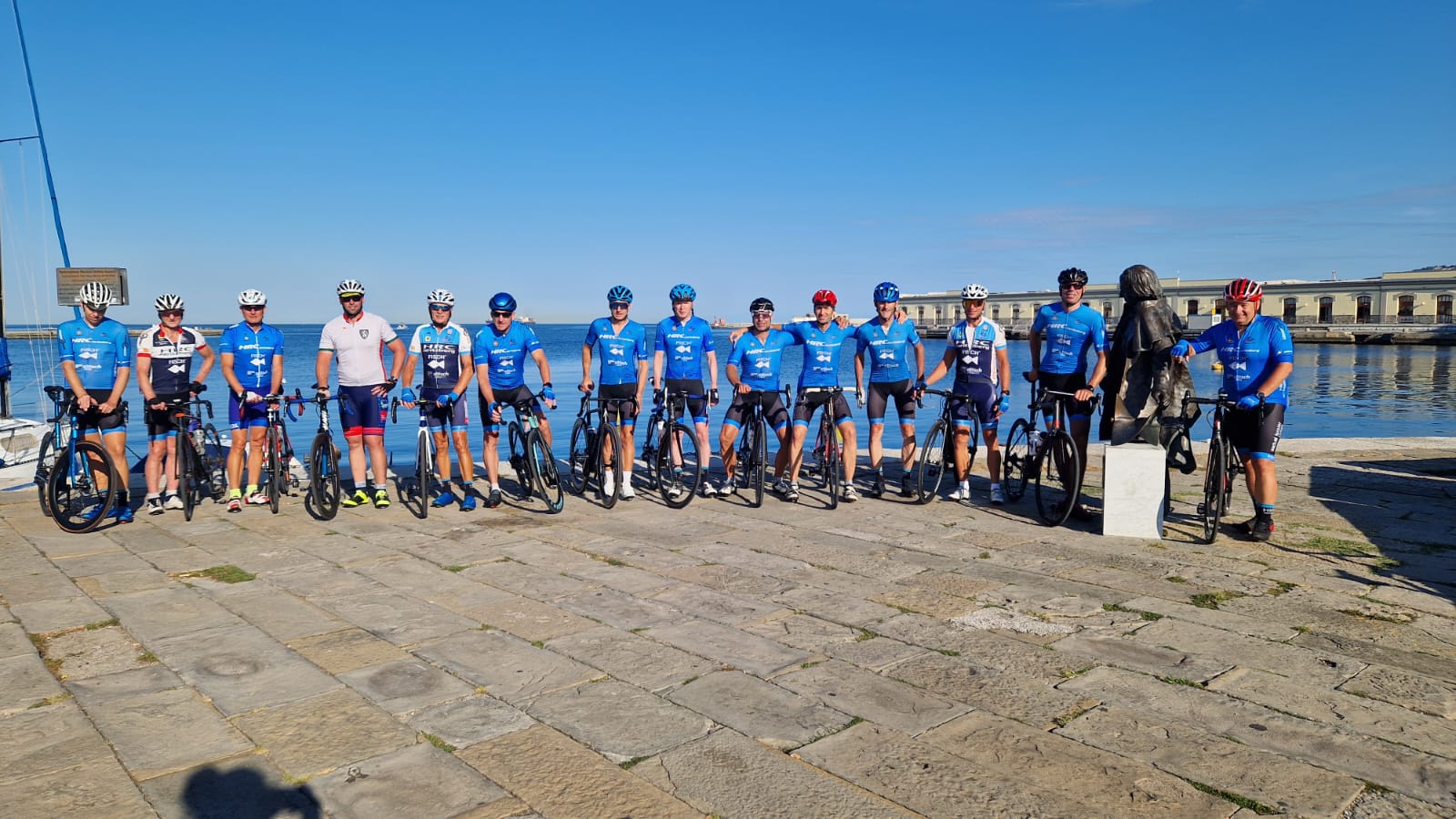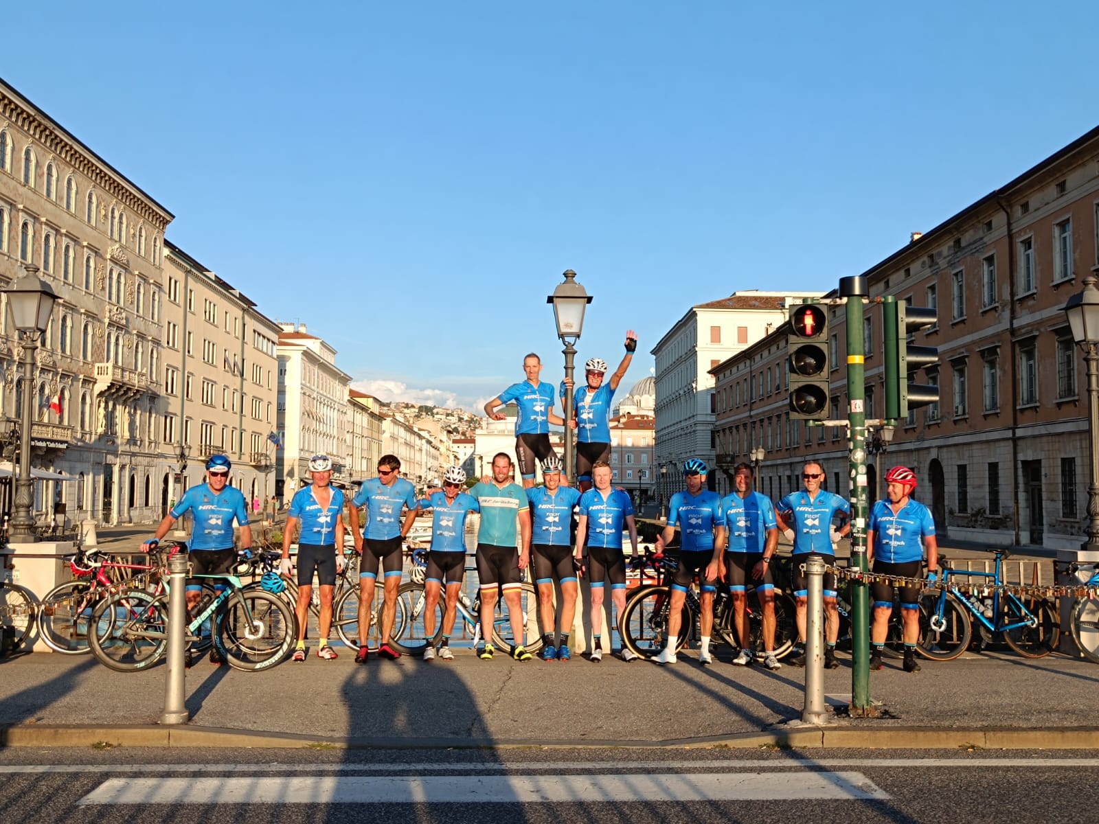 In diesem Jahr durften unsere Jubilare, Gernot Saubart und Hannes Schmidbauer, unserem Routenplaner Manfred Saubart-Gissing einige wertvolle Anregungen geben. So kam es, dass ein besonders langer erster Tag auf dem Programm stand. Unser Ziel war es, an einem Tag von zu Hause bis ans Meer zu fahren. Die Strecke führte uns über beeindruckende 292 Kilometer und 2.850 Höhenmeter nach Triest, wo wir direkt am Canale Grande ein Erinnerungsfoto machten. Einige Teilnehmer waren bereits bei der Gedenkfahrt 2013 dabei, bei der wir dieselbe Idee hatten. Damals war auch unser letztes Jahr viel zu früh verstorbener Freund Seppi Pedit mit dabei, sodass dieses Jahr schöne Erinnerungen an die damalige, gemeinsam gemeisterte Herausforderung aufkamen.