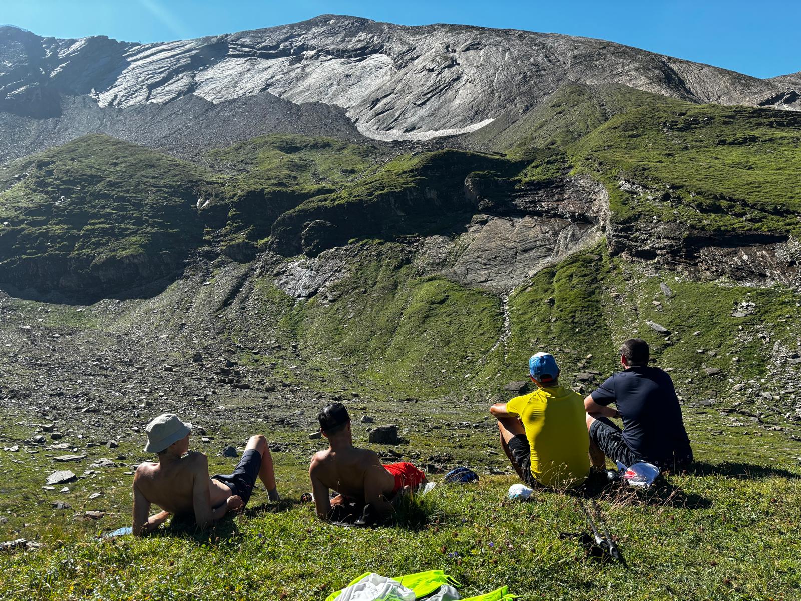 Am dritten Tag stand der Großglockner, der höchste Pass unserer Tour, als „Dach“ der heurigen Route auf dem Plan. Unsere Körper waren bereits von den Strapazen der letzten Tage gezeichnet, doch die meisten von uns schafften die Überquerung mit schmerzverzerrten, aber glücklichen Gesichtern. Ein kurzer Abstecher zum Zeller See und ein erfrischender Sprung ins kalte Nass durften bei den extrem heißen Temperaturen auch nicht fehlen. In Kaprun verstauten wir schließlich unsere Räder und nach einem gemeinsamen Abendessen ging es hinauf zur Übernachtung auf die Schaunbergalm, wo wir den Abend bei dem einen oder anderen kühlen Erfrischungsgetränk gemütlich ausklingen ließen.